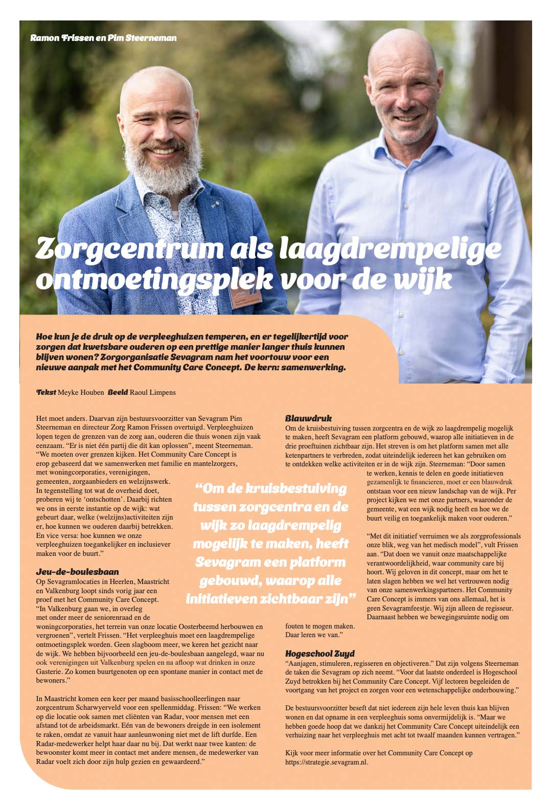 gaat Pim Steerneman, voorzitter Raad van Bestuur van Sevagram, in op de strategische visie achter Community Care en zetten we de proeftuin Maastricht in de spotlights.